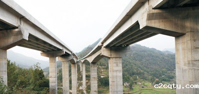 成(都)渝高速内江互通式立交桥 全长3699米,1997年12月建成通车。获交通部优质工程奖。