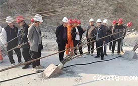 2月28日,在约乌拉达特大桥金阳岸的试吊平台上,110t的配重在缆索系统的牵引下,缓缓的提升到预定高度,并按既定方向移动