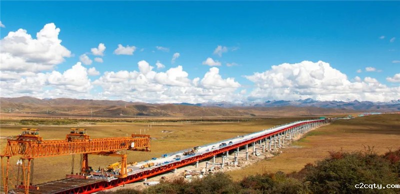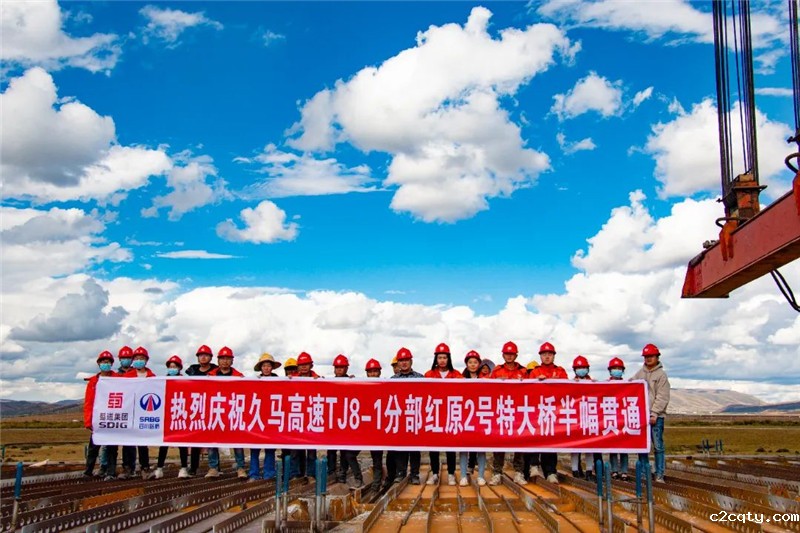 10月4日,在明媚阳光的照射下,久马高速TJ8-1分部红原二号桥半幅贯通。