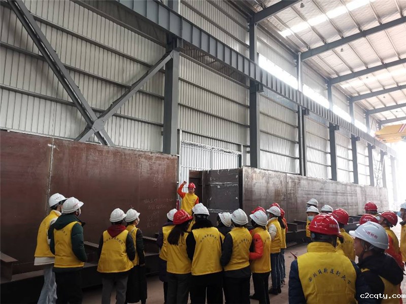 全体人员首先在生产车间,就近期加工的金简仁项目钢箱梁加工、检测、吊装等细致交流。加工厂技术人员王瑞向大家介绍讲解加工全流程情况。作为公司几大主营下属单位,加工厂作为大型钢结构加工厂家,和业务包含钢结构检测的检测公司,以及设备管理的机具站,活动人员借此机会不断提问、交流、分享。