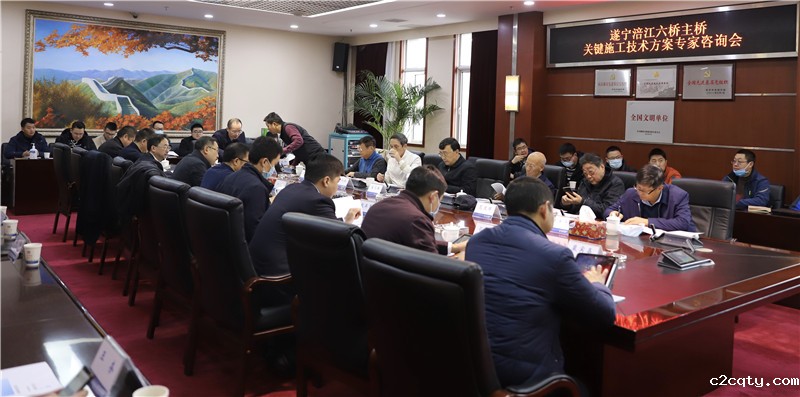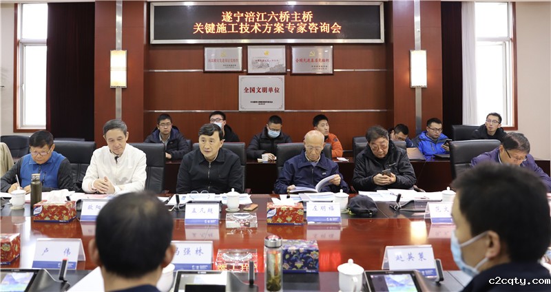 2020年11月26日上午9时15分,遂宁涪江六桥主桥关键施工技术方案专家咨询会在四川路桥集团10楼大会议室召开,港珠澳大桥总设计师孟凡超等十位特邀国内知名桥梁专家,四川路桥集团副总经理冯强林出席会议。会议由四川路桥集团总工程师卢伟主持,四川路桥副总工程师邓运祥、桥梁公司董事长王祥、华东公司总经理徐国挺、勘察设计公司总经理刘万春、桥梁公司总工程师倪红,四川路桥集团技术质量部、桥梁公司、华东公司、勘察设计公司、遂宁涪江六桥项目部相关同志以及其他参建单位相关代表参加了会议。
