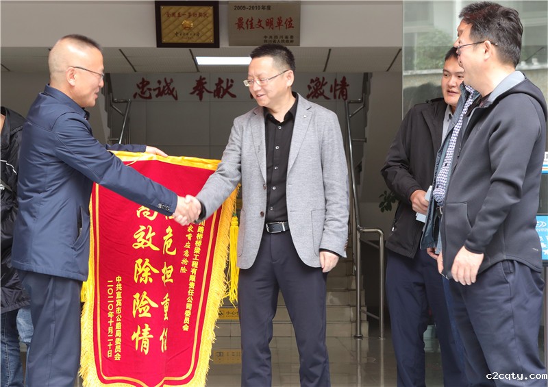 11月20日,宜宾市公路局党委书记、局长孙洪、宜宾市公路局党委委员、副局长王忠将“高效除险情”的锦旗送至桥梁公司,衷心感谢四川路桥集团、桥梁公司对宜宾公路交通的支持。这不仅仅是一份感谢,更是对我们川桥人工作的肯定。