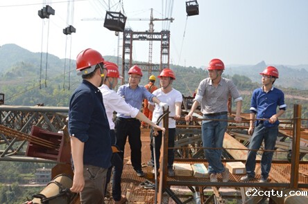 蔡乐军董事长在磨刀溪特大桥钢管拱合龙段与项目技术人员进行交流