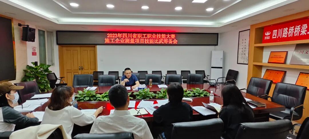 为保证技能竞赛顺利进行,安全、优质、高效承办本次省级赛事, 5月25日,蜀道投资集团有限责任公司2023年四川省职工职业技能大赛施工企业工程测量项目技能比武大赛筹备会在公司机关二楼小会议室举行。筹备会由公司党委委员、纪委书记、工会主席郑鹏主持,川桥检测公司、技术质量部、党群办公室、综合办公室、镇广高速C4项目等相关人员参会。