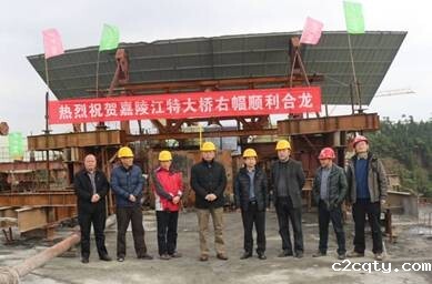 2014年1月6日下午14时,遂广高速武胜嘉陵江特大桥上彩旗飘扬,一派热火朝天的景象。随着最后一方混凝土浇注,由我司遂广高速SG1-4项目施工的武胜嘉陵江特大桥主桥中跨浇注完成,嘉陵江特大桥主桥右幅顺利合龙。这一合龙,标志着遂广高速难度最大、跨度最大、安全风险最高的特大桥控制性工程已被我部顺利攻克,为2015年全线通车赢得了宝贵时间。