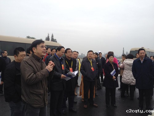 成都市副市长刘守成、成都市交委主任胡庆汉、崇州市市委书记赵浩宇、二绕公司副总经理赵斌等领导陪同视察。市交委主任胡庆汉向参观的各级人大代表介绍了成都市的综合交通体系建设情况及成都二绕的建设情况。胡主任介绍道:成都第二绕城高速公路全长223公里(主线),全线6车道,其中在成都市境内160余公里,分为东、西半段建设。成都第二绕城高速公路西段项目位于成都市中心城区和三圈层城市组团之间,路线起于双流县华大路以西,经双流县、新津县、崇州市、温江区、郫县、新都区,止于彭州市濛阳镇,将成都市7个区(市、县)串联起来。二绕西半段路线全长114.22公里,路基宽33.5米,设计时速100公里/小时。该段路将在12月通车。二绕建成后不仅能缓解成都市现有绕城高速公路及环状城市主干线交通压力,分流城市过境交通,还能满足日益增长的客货运输需求。