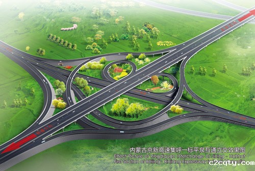 工程位于内蒙古乌兰察布市察哈尔右翼前旗平地泉镇境内,是京新高速与二广高速高接高枢纽互通,为京新高速集呼一标的控制性工程。互通占地900余亩,主线桥全长1787千米。先后上跨京包铁路、二广高速公路,为目前内蒙最大的枢纽互通。